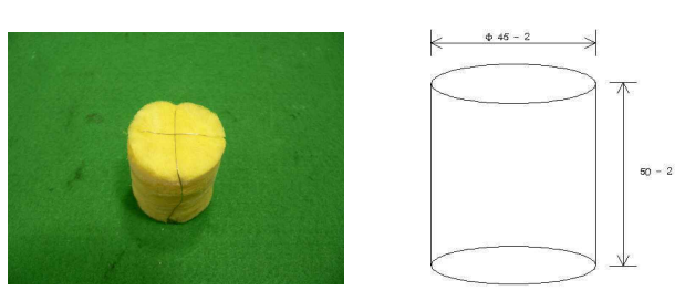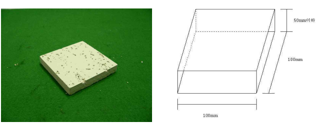 ※ 불연성 시험체 : [ 그림 ① ] 참조. 만약 높이(두께)가 50 mm가 안될 경우 차곡차곡 쌓아서 높이를