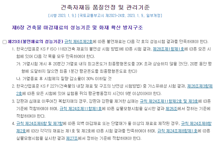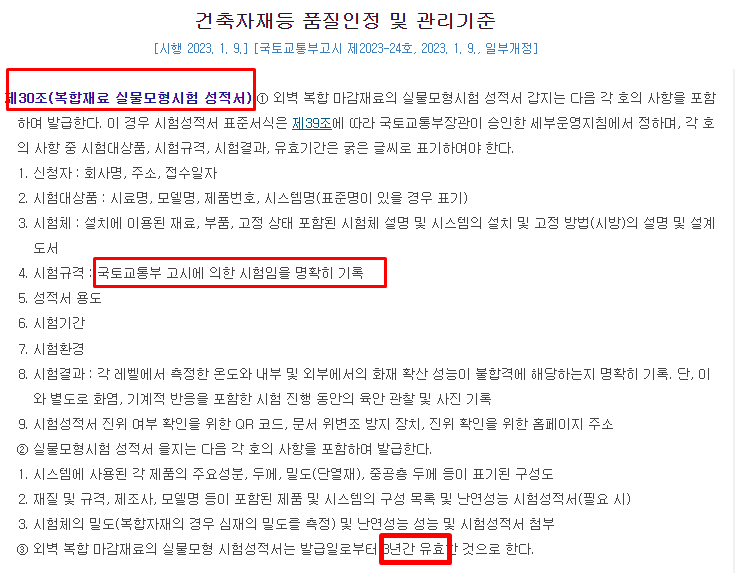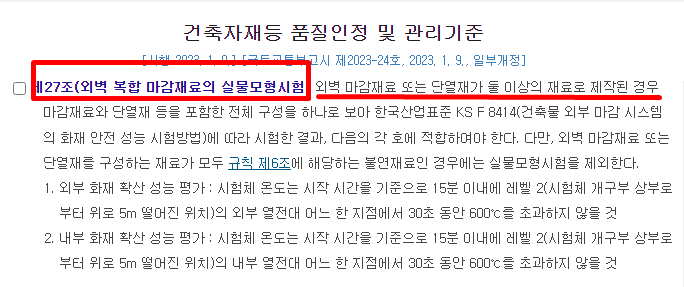 | 외벽마감재료 구성재료의 화재성능 시험기준 (4) | 2024.09.09 |
