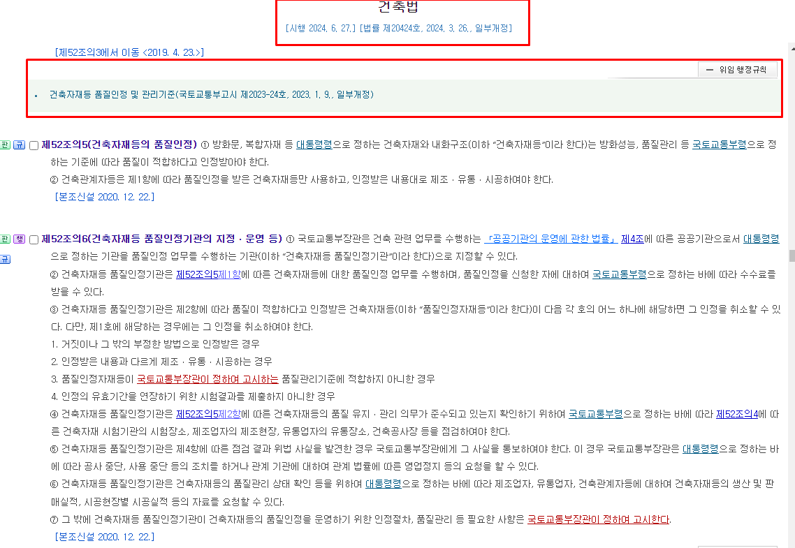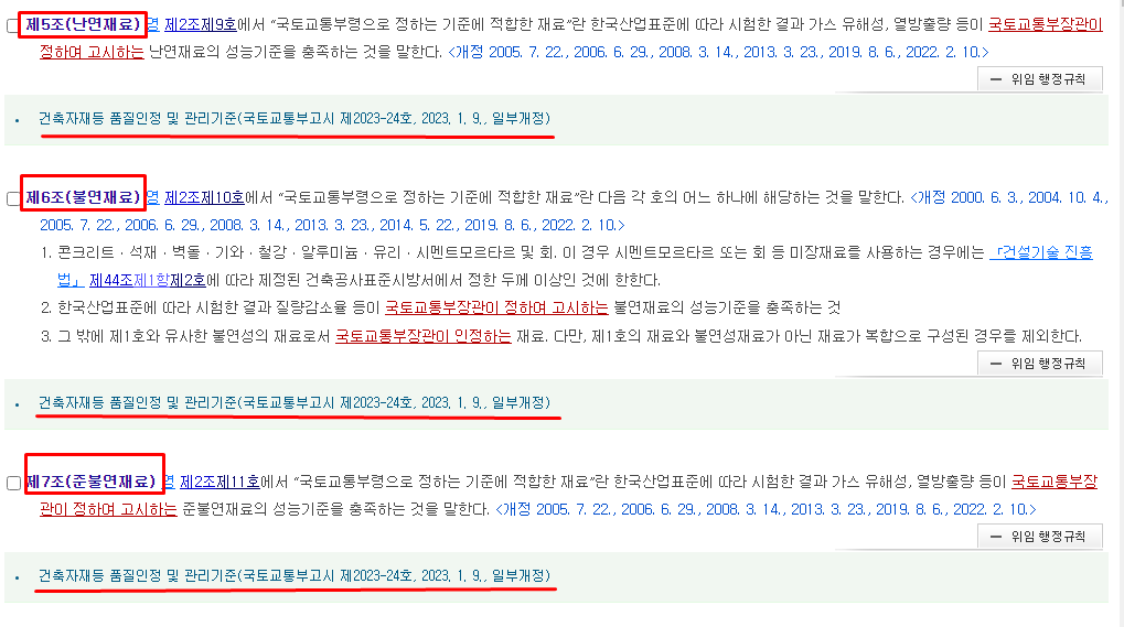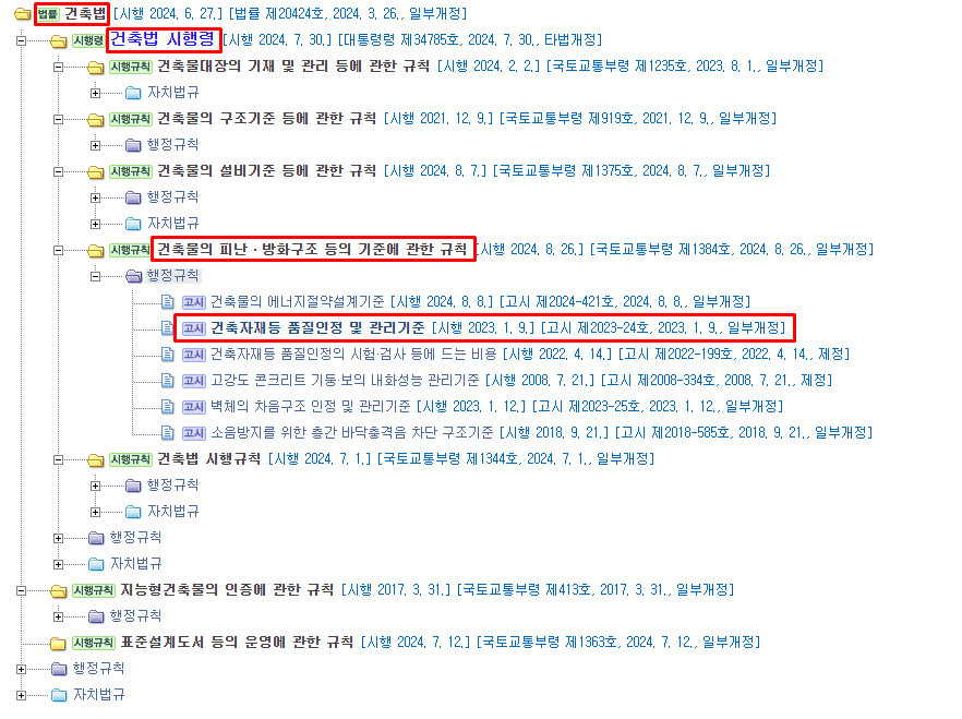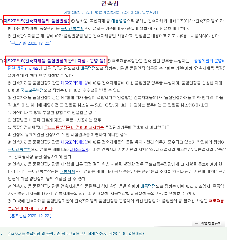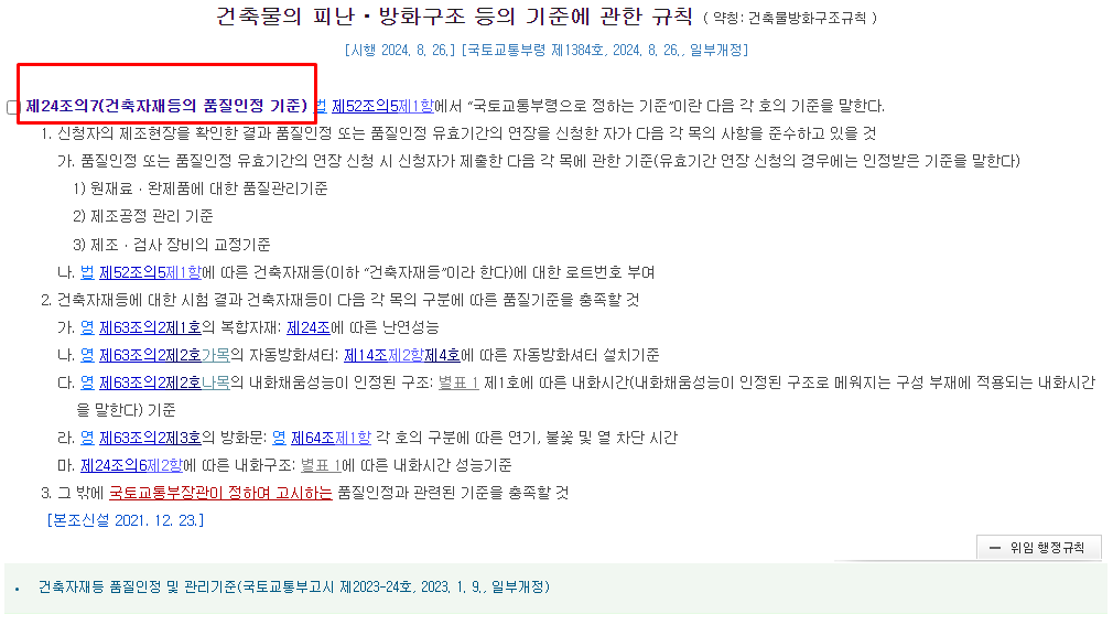 건축자재등 품질인정 및 관리기준(고시 제 2023-24호)