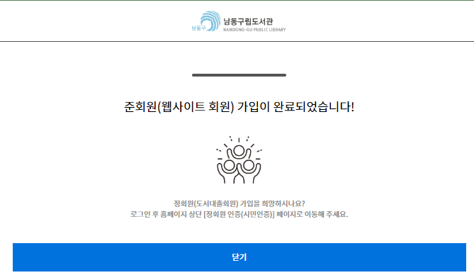 '정회원'인증까지 완료하시어 모바일에서 도서대출회원증 발급받으신 분.