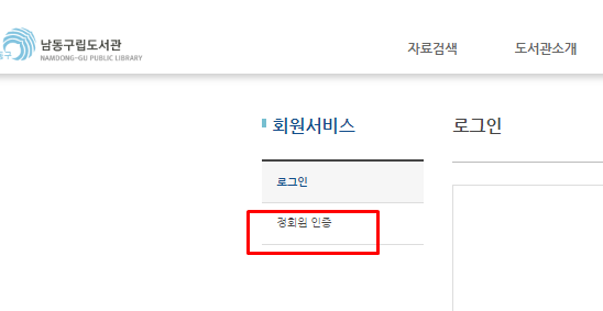 남동구립도서관 홈페이지 준회원 가입 후