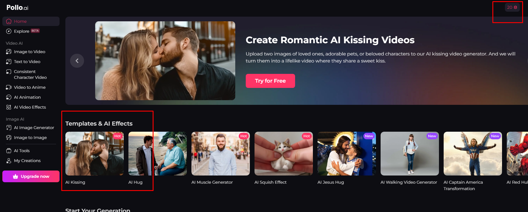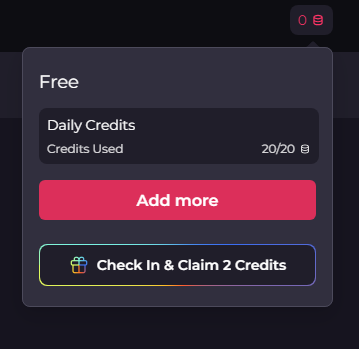 무료 플랜 : 20 크레딧 제공(약 2개의 영상 제작 가능).
