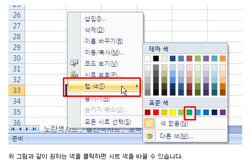 엑셀시트 색 바꾸는 방법