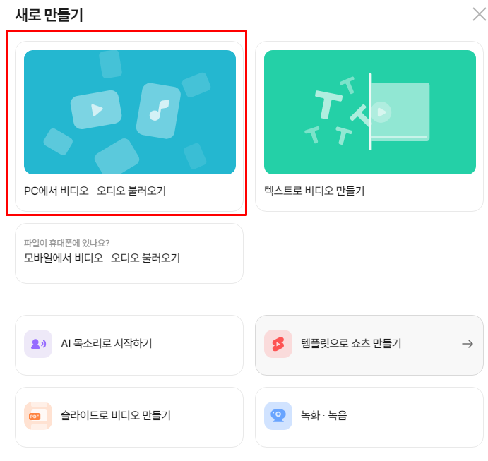 2. 새로만들기에서 음성/동영상 화일 불러오기