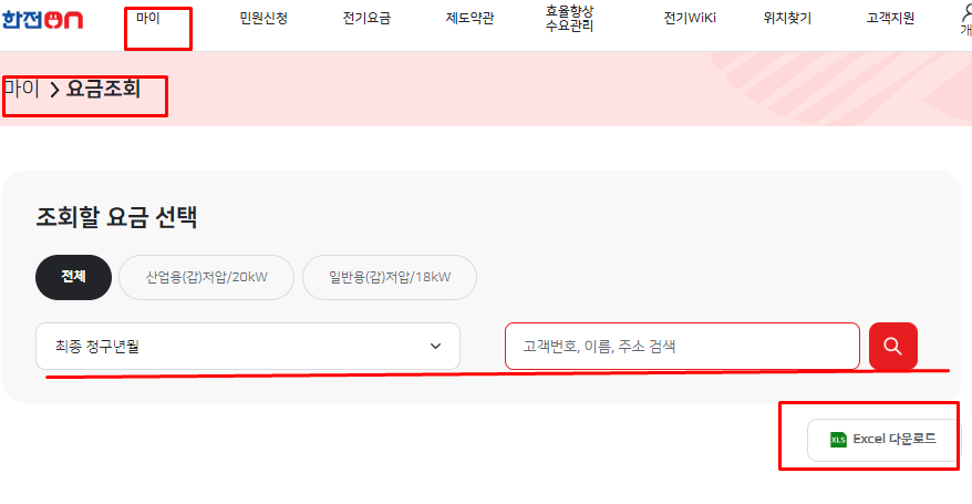 해당 사이트에 방문하여 로그인 후 요금 조회 메뉴를 클릭하면 본인의 전기요금을 확인할 수 있습니다.