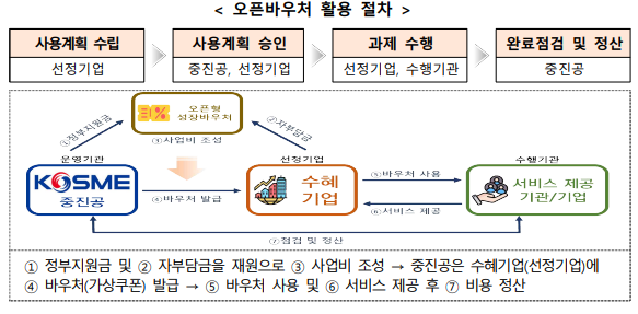 - 매년 2억 원, 최대 3년간 7.5억 원의 오픈바우처를 발급하여, 기업이 자율적으로 신사업을 추진할 수 있도록 지원합니다.