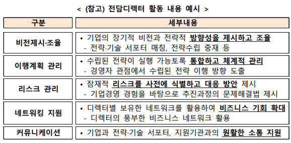 중소기업이 신사업과 신시장에 도전할 수 있도록 3년간 집중 지원하는 전용 프로그램 도입입니다. 이 프로그램은 ‘디렉팅’, ‘오픈바우처’, ‘네트워킹’으로 구성됩니다.