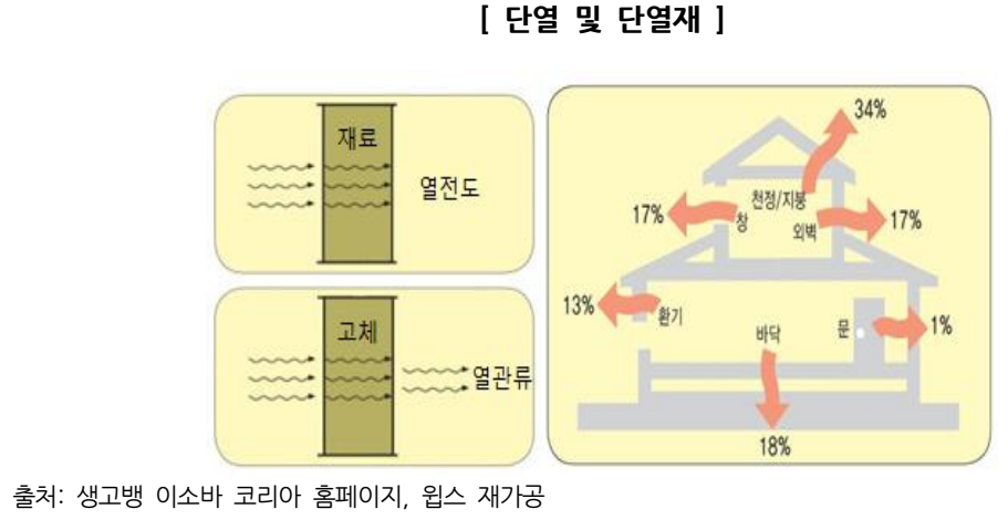 - 단열이란 필요한 열의 외부 유출을 방지하고, 불필요한 열의 내부 유입을 방지하는 것을 의미함