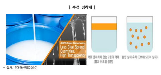 ▪최근 실내 환경 문제 등이 대두되면서, 친환경성 점·접착제에 대한 수요가 증대하면서, 수성 점착제에 대한 연구개발 또한 활발히 진행되고 있음