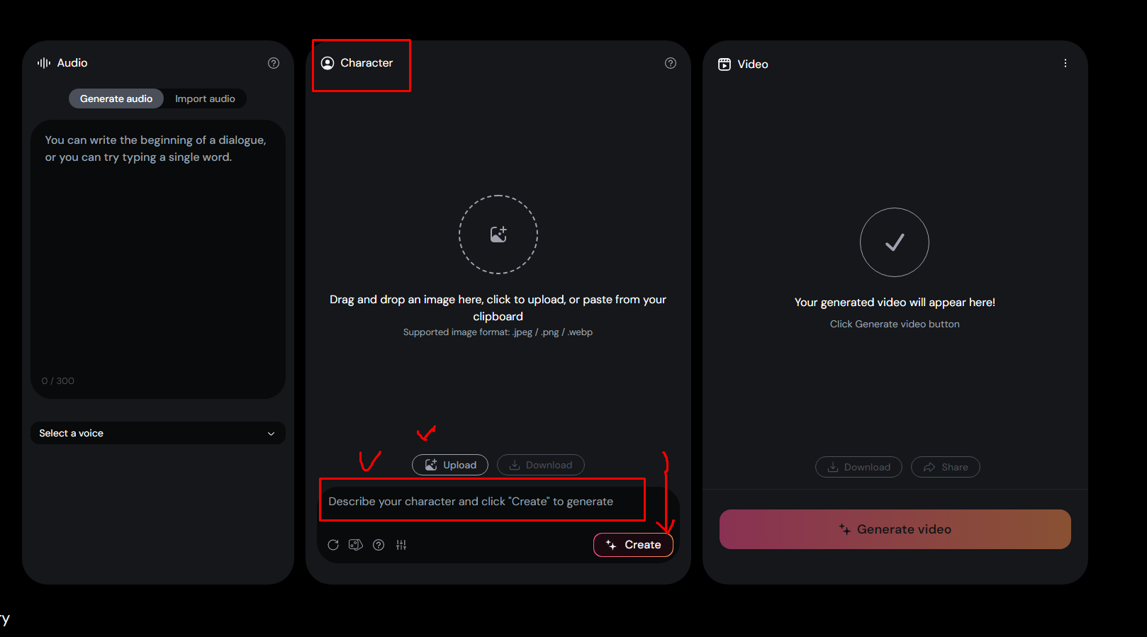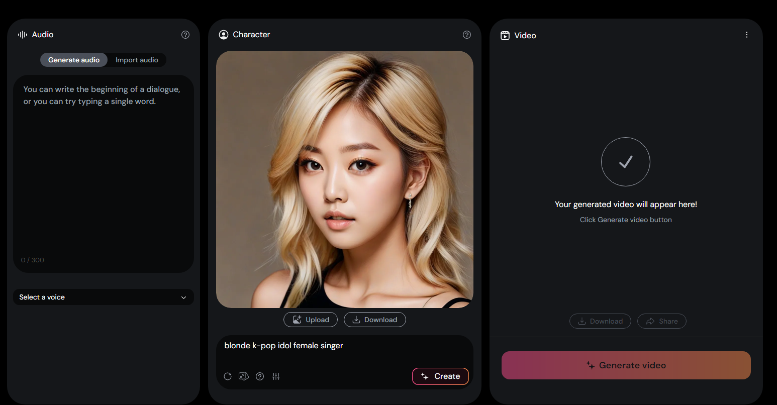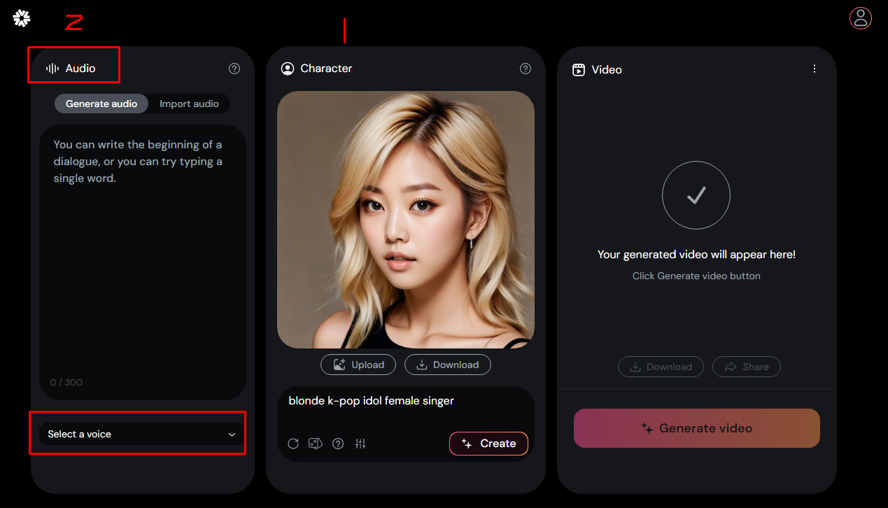 1. 캐릭터를 업로드 해도 되고 영어로 작성 하여 생성해도 되요