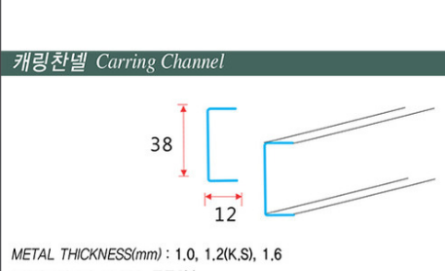 캐링 채널: 38mm x 12mm x 1.2T