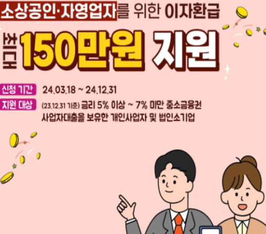 대출을 받고 있는 자영업자/소상공인의 이자를 덜어 들이는 정부 지원 사업이 있어요~