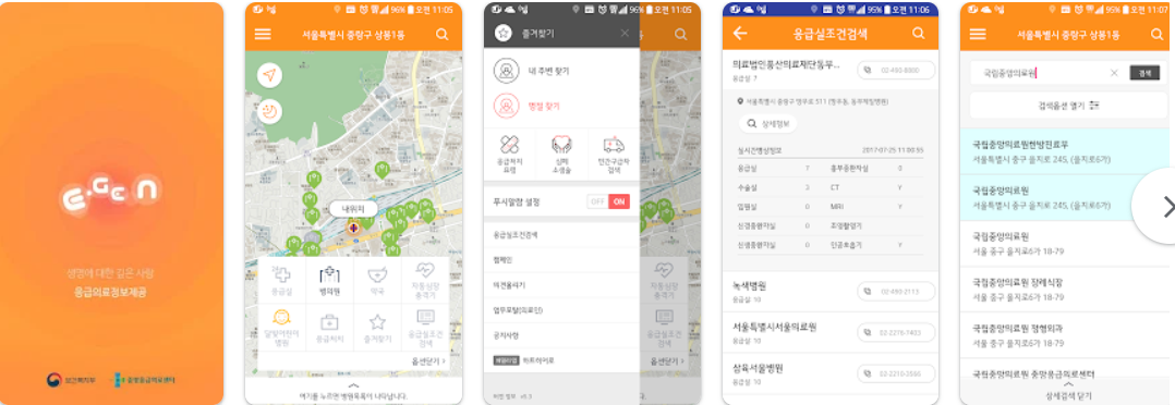 [응급의료정보제공 앱 주요 기능]