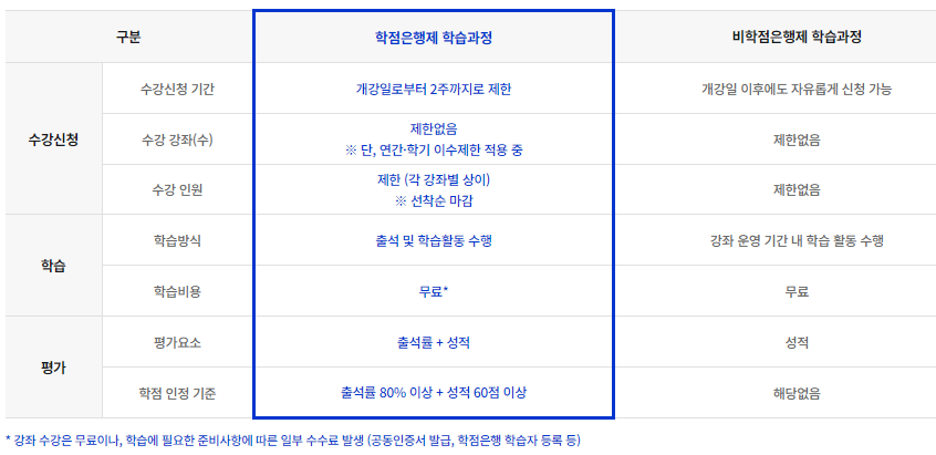 4. 케이무크 학점은행제 학습과정과 비학점은행제 학습과정의 차이?