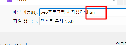 화일명 저장할때 확장자 명을 .html로 저장해 주세요
