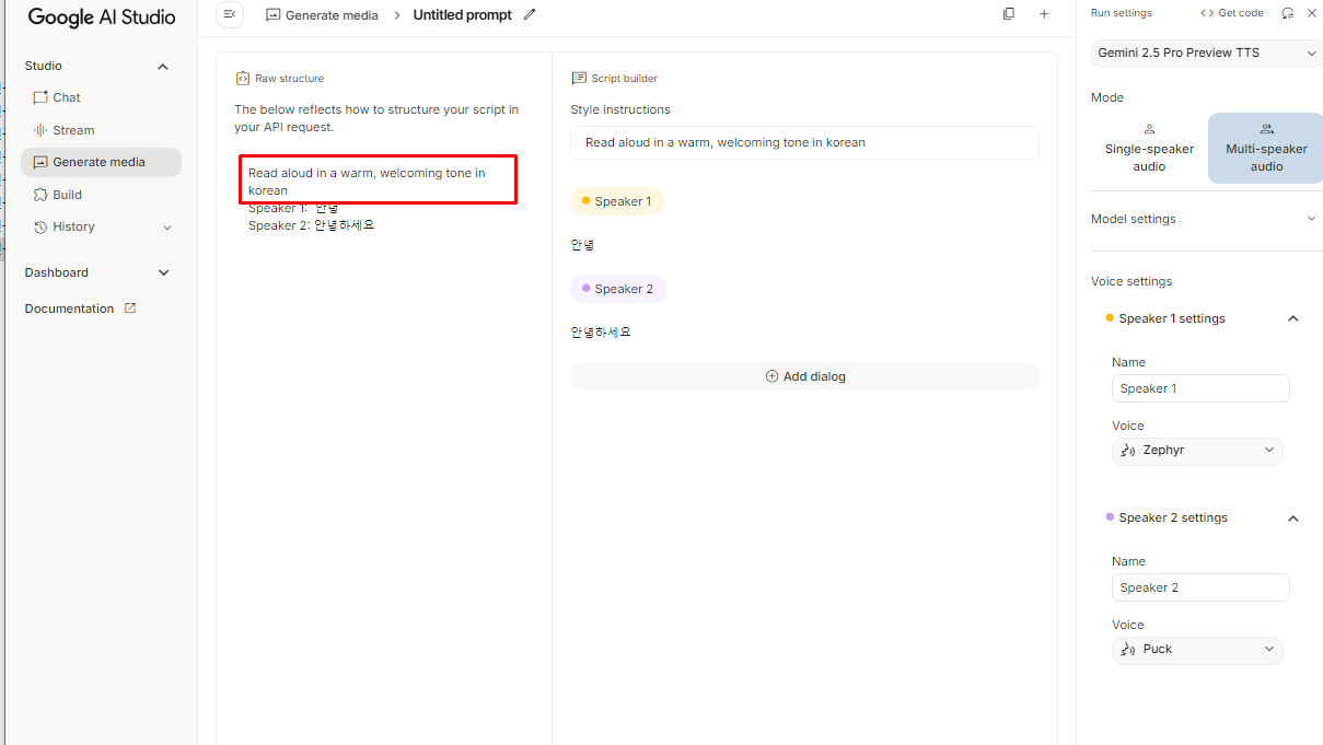 ai studio 에서 음성 생성하기