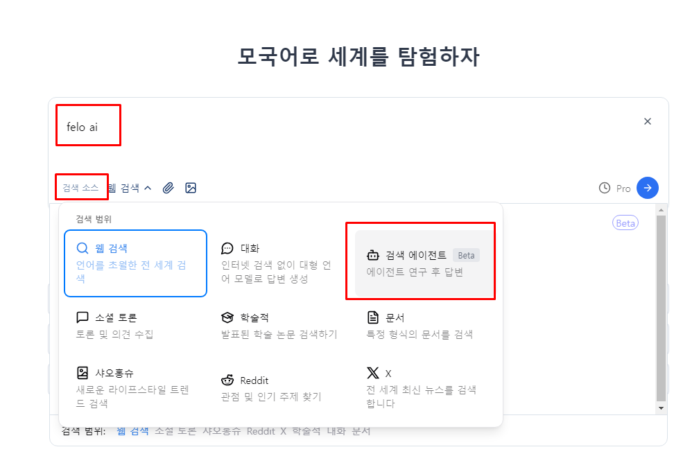 4번에서 검색소스를 선택하세요 웹검색이 기본이지만 검색에이전트 진행해 보세요