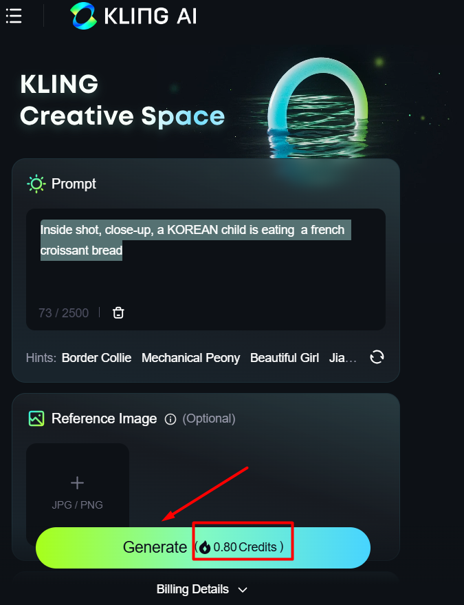 이미지를 생성하는데 0.8 credits을 사용하네